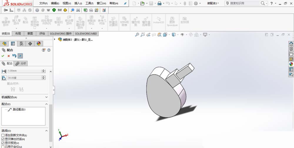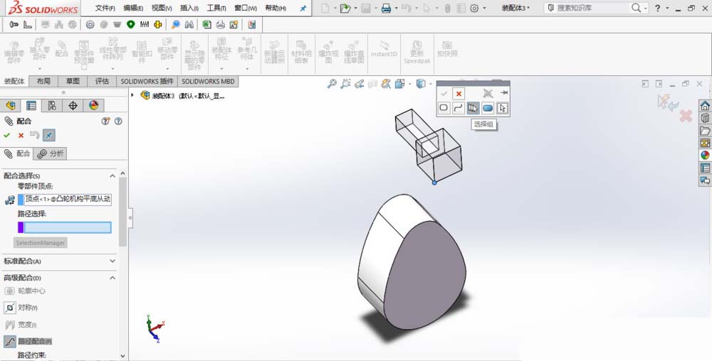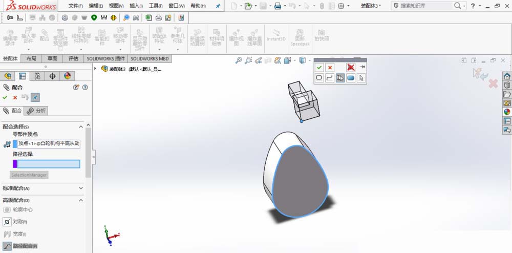 6、单击确定,完成路径配合的添加。至此,完成凸轮机构的装配,保存装配体模型。