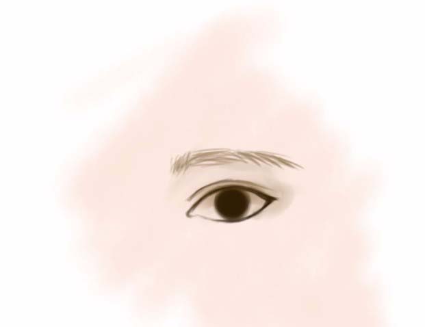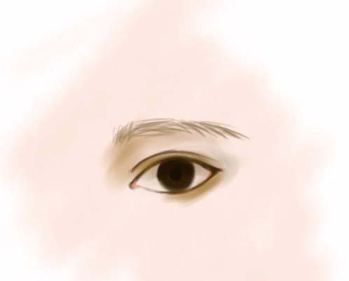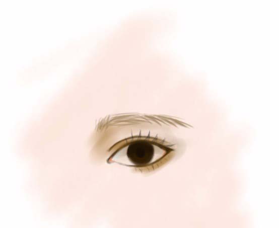 4、眼睛轮廓,双眼皮加深,中间用最深的颜色画瞳孔。再加上周围的阴影。