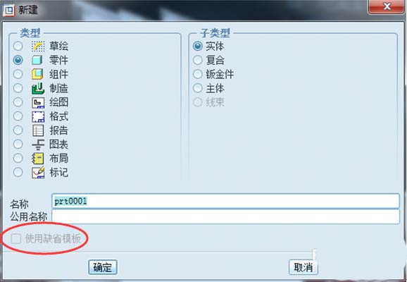 6、再新建零件时,“使用缺省模板”项已默认不勾选了。