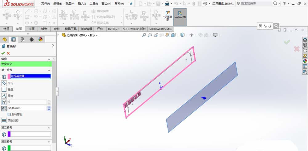 2、创建基准面1,如图所示。