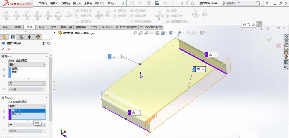 SolidWorks中想要绘制弯曲的模型,该怎么创建呢?下面我们就来看看使用SolidWorks中的边界曲面命令创建的方法。