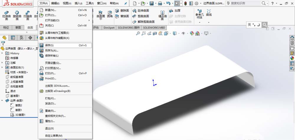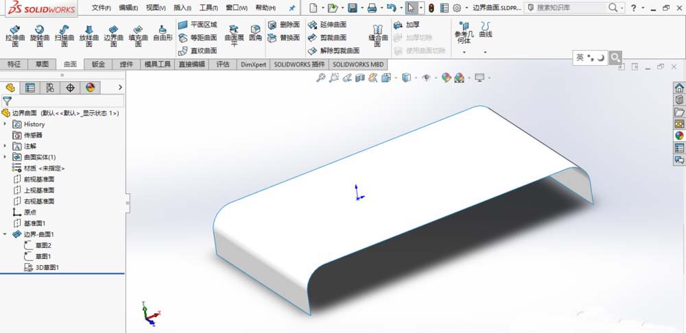 7、单击确定,完成边界曲面创建。保存模型。