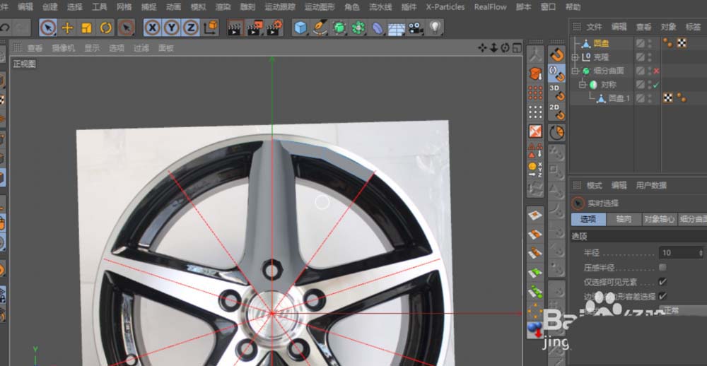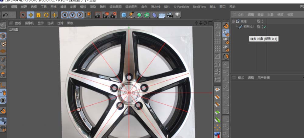 1、先找到一张汽车轮毂的正面图,打开软件按“Shift+v”,在正视图中导入参考图。