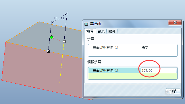 1、拉伸一个圆柱或圆孔时会自动产生一个基准轴。