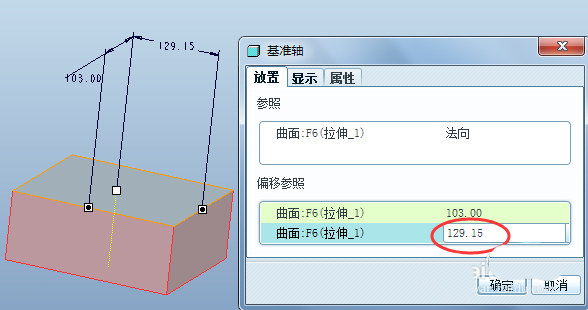 5、调整好以上参数后,点击确定,基准轴如下所示。