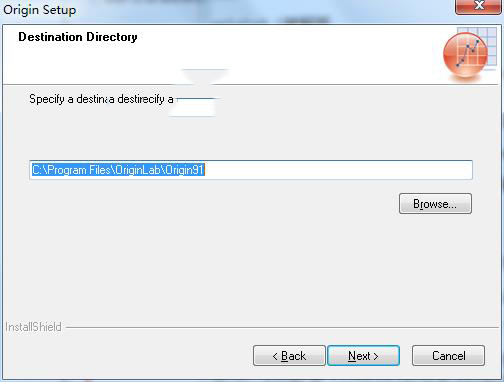 九、选择安装路径,安装路径一般建议放在比较大的盘符中,但一定需要注意更改的路径一定要记住以此方便下一步的破解,不过建议直接默认,默认路径为C:\Program Files\OriginLab\Origin91