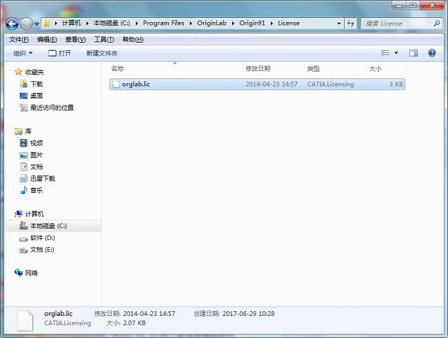 2、再将Crack中的orglab.lic文件,复制到软件目录中的license文件夹内,默认路径为C:\Program Files\OriginLab\Origin91\License