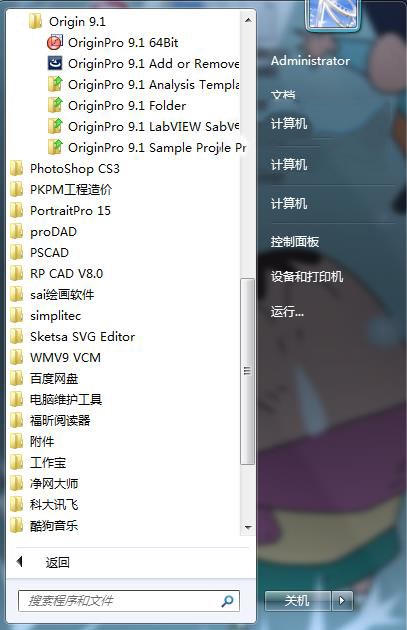 开始菜单-所有程序-OriginLab-Origin 9.1,点击相应的功能即可打开相应的程序