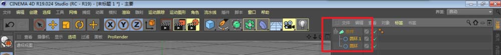 5、如下图点击放样工具后新两个圆环拉到放样下方,作为放样的子级;