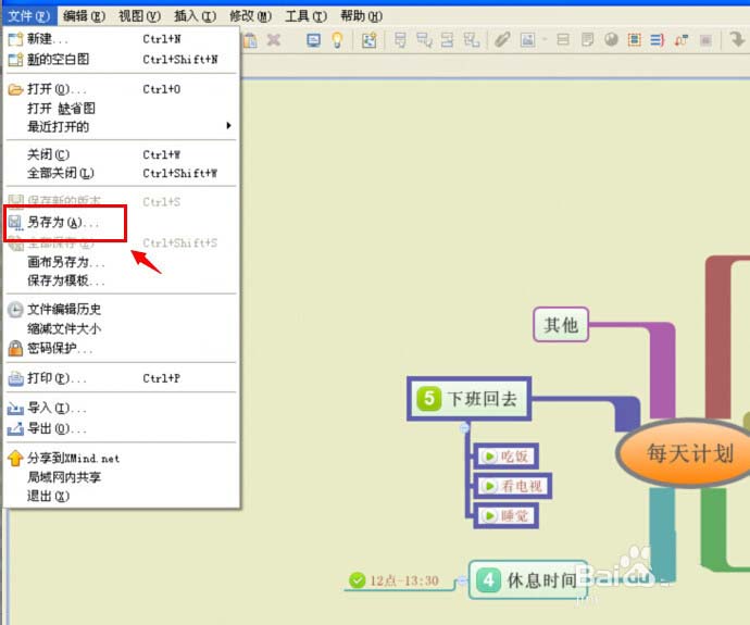 7、还可以进行相应的标记查看,比如点击右下角的图标进行查看已经完成的任务,点击主菜单栏中的文件菜单,在弹出来的功能菜单中,选择另存为。(如下图)