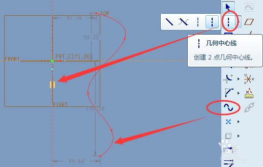 1、草绘。草绘一条曲线作为旋转截面,同时草绘一条几何中心线作为旋转轴,如下图。旋转轴也可直接选用已存在的基准轴,而不用重新草绘。