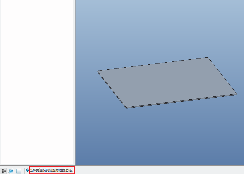 2、然后点击工具栏中的“法兰”,进入到法兰壁操控板,在状态栏中提示我们选择要连接到薄壁的边或边链