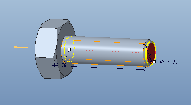 5、接着选择螺纹的起始面,选择螺栓的尾部,并定义螺纹的长度