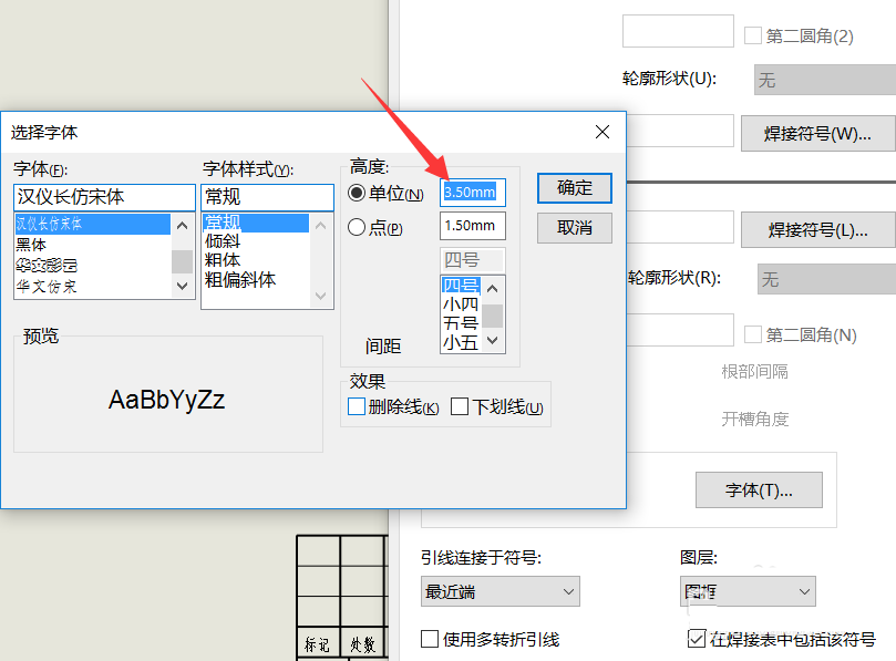 6、而后面的数字就是焊接符号的尺寸了,修改上面的数字即可修改焊接符号的大小。