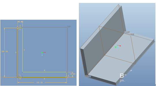 1、准备工作。筋要在现有实体曲面上进行,例如先采用拉伸法形成如下L形实体,尺寸自定。