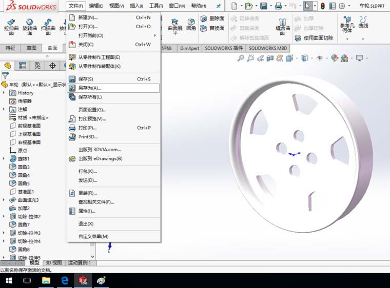 1、中间格式主要有两种,分别是.igs和.stp。SolidWorks打开车轮零件模型。