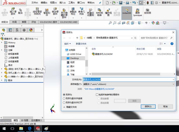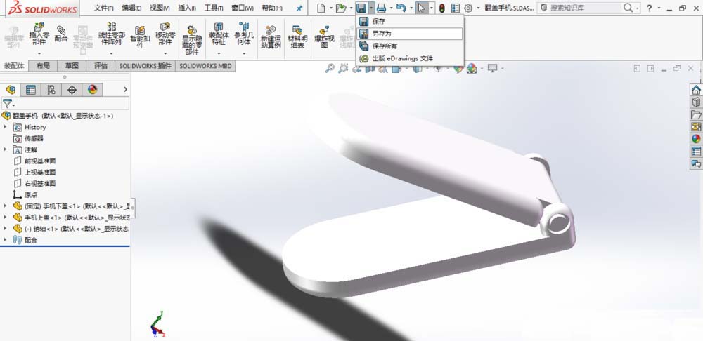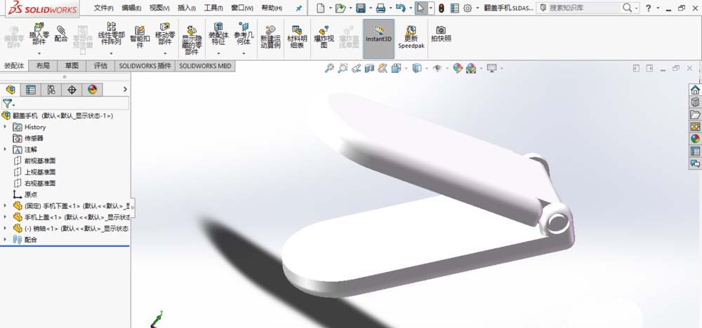 SolidWorks打开翻盖手机装配体模型。