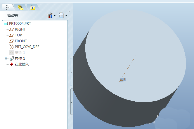 1、孔为减材特征,因此需先绘制实体特征,例如先采用拉伸法或旋转法形成如下圆柱。