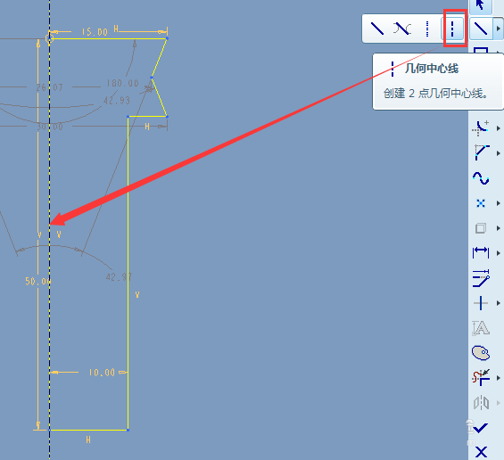 2、此时进入如下草绘环境,绘制好孔的截面,记得一定要添加中心线。