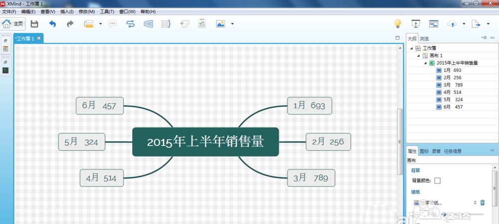 5、接着,将主题上的内容修改有意义、有代表性的内容,这里设置2015年上半年的销售量,分支主题展示的是前六个月的销售量,如下图所示: