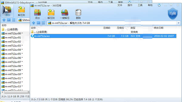 1.软件的数据包比较大,总共有12个多G,分为32个压缩包,我们先解压得到“m-mt712a.iso”的镜像文件