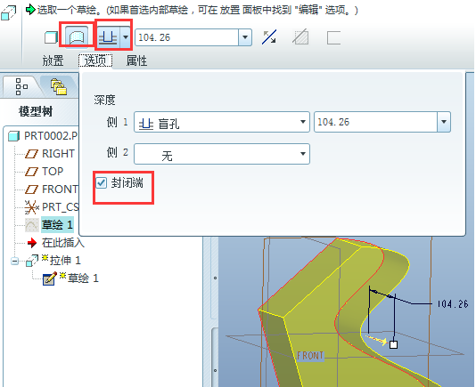 ProE中的曲面或封闭环进行拉伸,可形成曲面或实体,下面我们就来看看实例教程。