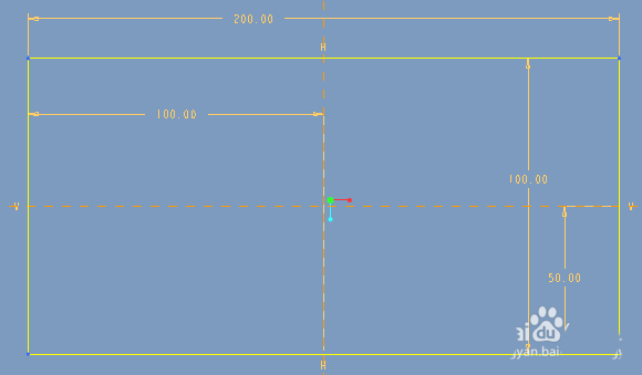 1、草绘。草绘如下的矩形,尺寸供参考。