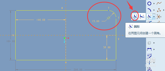 2、圆形。圆形角的操作方法如下图,尺寸仅供参考。