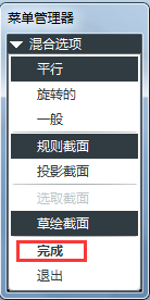 2、菜单管理器中选择默认值,即“平行”、“规则截面”、“草绘截面”,然后点击 “完成”或按鼠标中键。