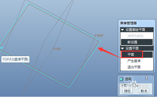 4、选取top面作为草绘平面。