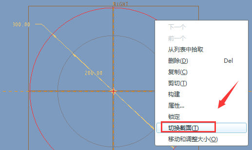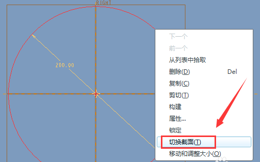 5、草绘如下直径200的圆形,然后在圆上点击右键,弹出框选“切换截面”。