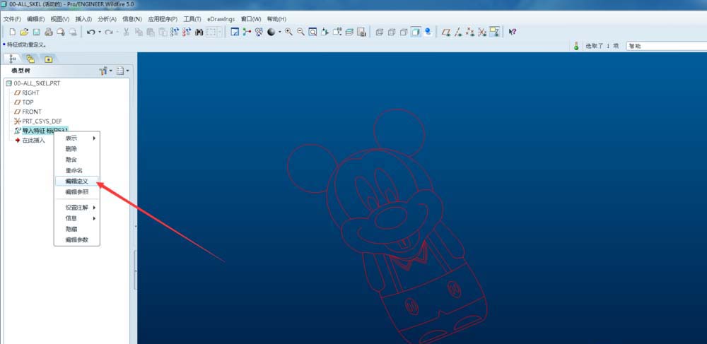 1、点击导入特征-鼠标右键-编辑定义