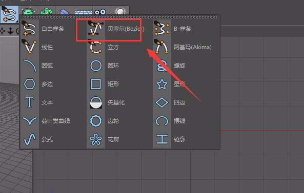 3、点击自由样条线选项,在其下拉列表里我们找到贝塞尔选项,如图所示: