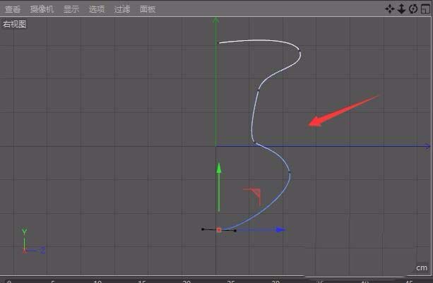4、选择贝塞尔选项,在右视图里我们绘制一条贝塞尔曲线,如图所示: