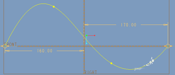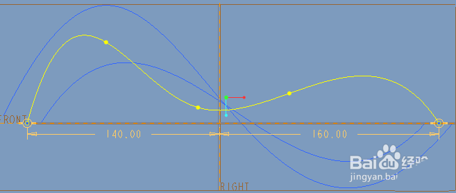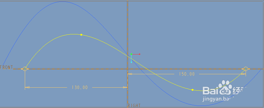 3、在DTM1面上随意绘制一条曲线,尺寸可参考下图,按√完成草绘。