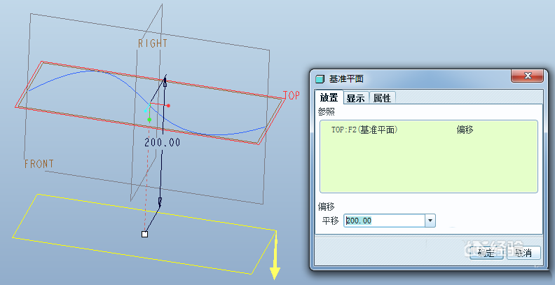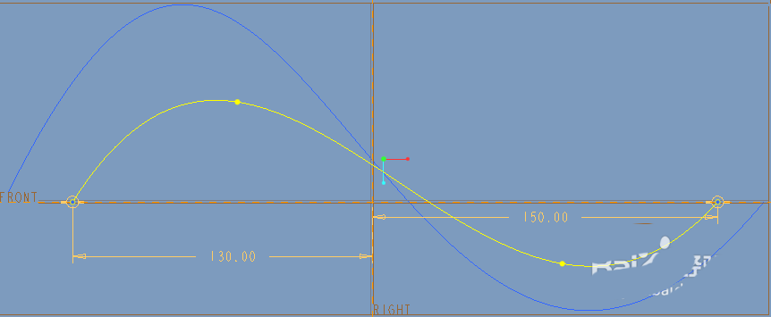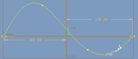 3、在DTM1面上随意绘制一条曲线,尺寸可参考下图,按√完成草绘。