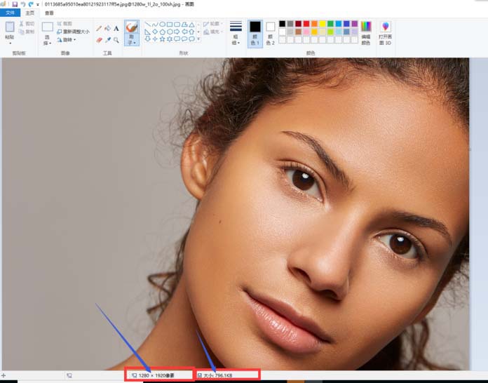 5、打开图片后,在最下栏能看到该图片的像素大小和文件大小等信息。