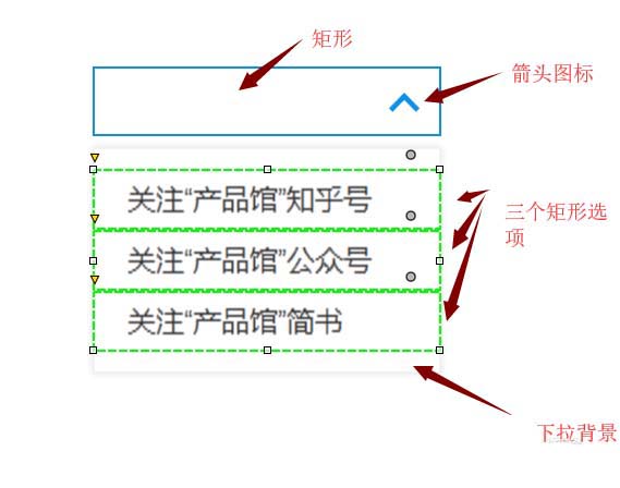 1、先把自定义的下拉菜单样式设计好,注意组件结构