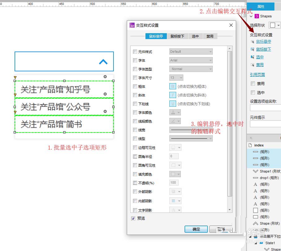 用同样的方法,设置下拉框的交互样式