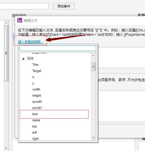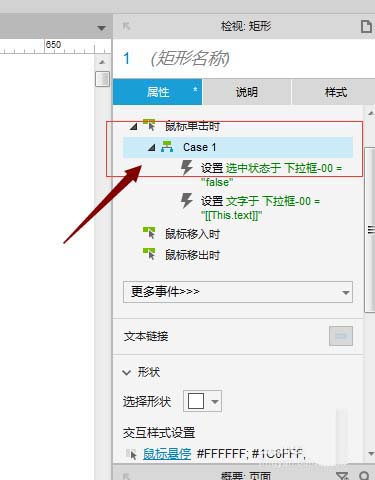 2)把选中的下来选项回显在下拉框上。这里使用axure函数变量[[This.text]]来设置