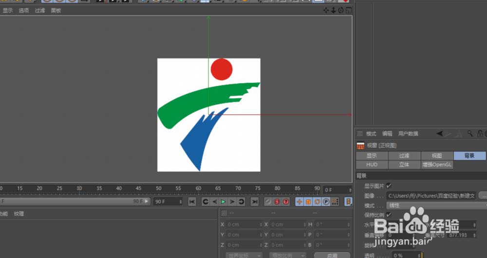 1、从百度中搜到图片,新建C4D文件,在正视图中导入背景作为参考使用。
