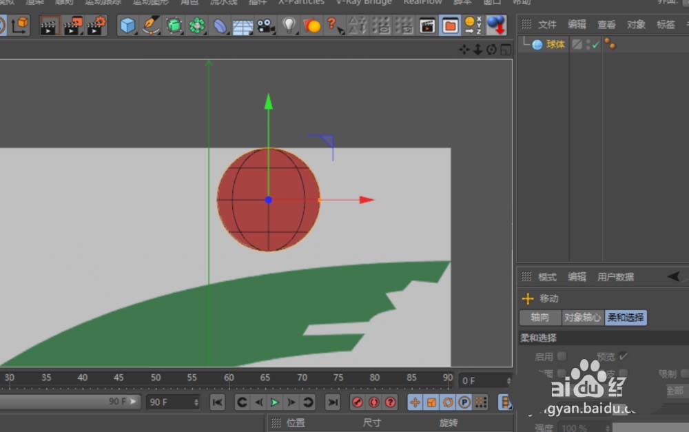 2、LOGO分为三部分,顶上的圆点,可用圆球创建,用移动工具将圆球的中心移到参考图圆形的中心,再用缩放工具或调整圆球的直径使与参考图的圆形相重合即可。