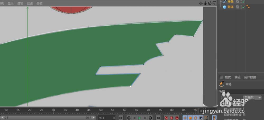 4、最底下的部分跟上一部分相同,通过画笔画出轮廓再调整点,在圆滑处要将点改为柔性插值,锐边则改为刚性插值。