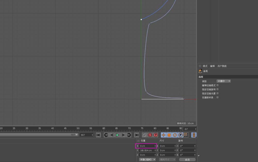 4、这里有基点需要注意,第一,开放式线条,第二,Y轴对称,即起点和终点的X坐标严格控制为0。