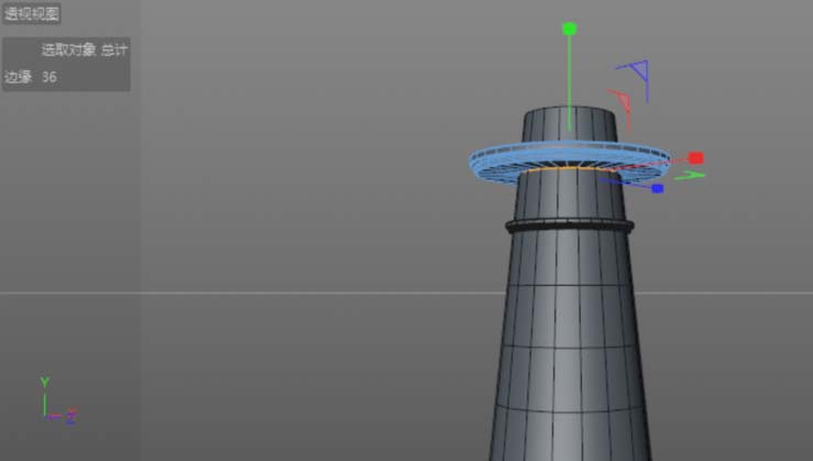 3、在塔身大概三分之一处,放置一圆管,调整半径,转为可编辑多边形后对边进行缩放和挤压得到托底形状。其上一层的形状和托底的结构相似,复制托底,调整其大小得到平台底。