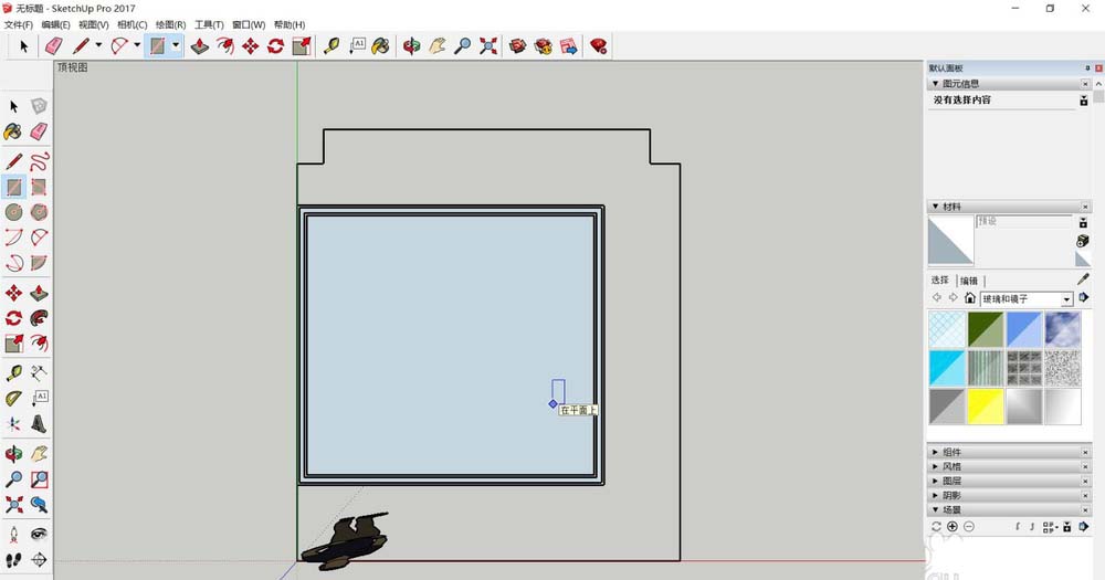10、转角部分也会自动转过来,最后在原点处松开鼠标,即形成了一条闭合的线条。可以将其与吊顶部分建成组或群组,再运用到房子的模型中。