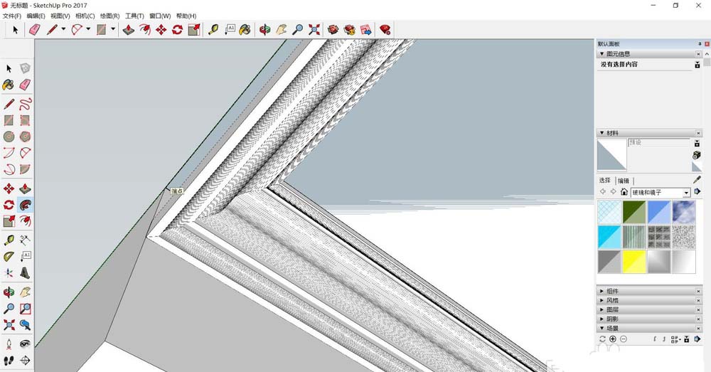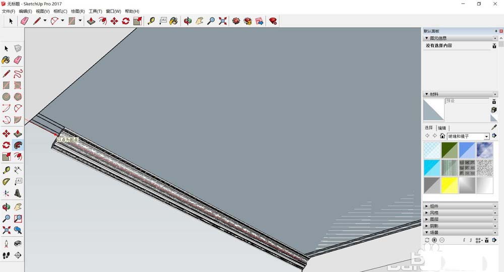 8、将之前吊顶描线部分建一个群组:选中吊顶部分—创建群组。将线条样式2移动至吊顶部分,使它们合理贴合。将线条边线描闭合线,该线将作为线条的路径走线。