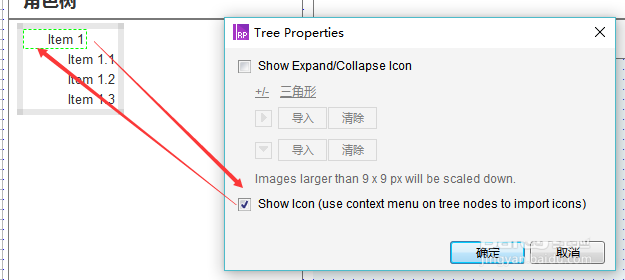 3、第一种形式,打上对勾,导入图片或选择+/-,三角形即可实现图标样式,我们这里选择的是三角形,以此类推,后面的也可以用这种形式。