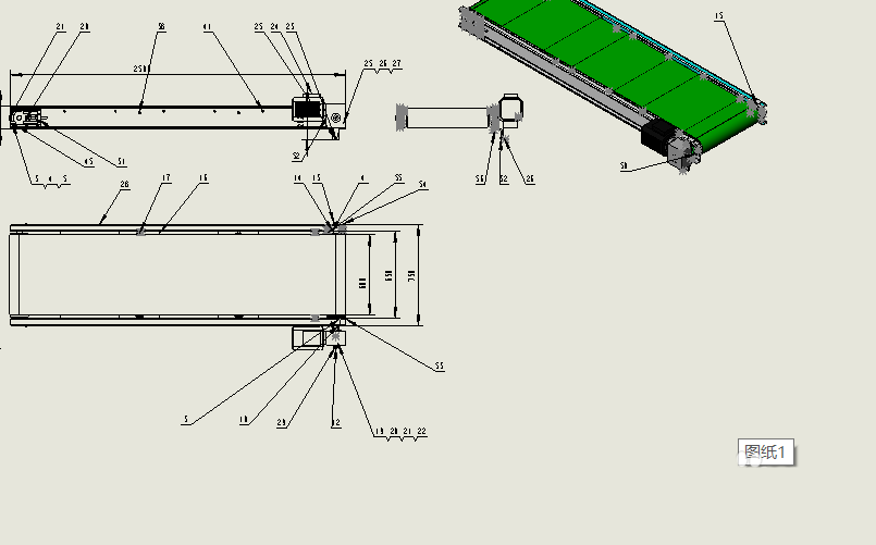 1、先打开需要制作明细表的工程图,标注好大概尺寸和零件序号。