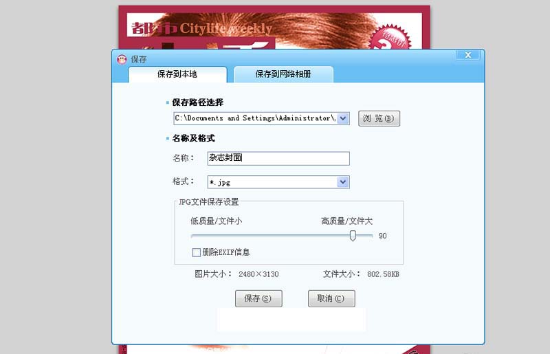 6、点击保存按钮,输入名称为“杂志封面”,其他参数选择默认即可,将文件进行保存。